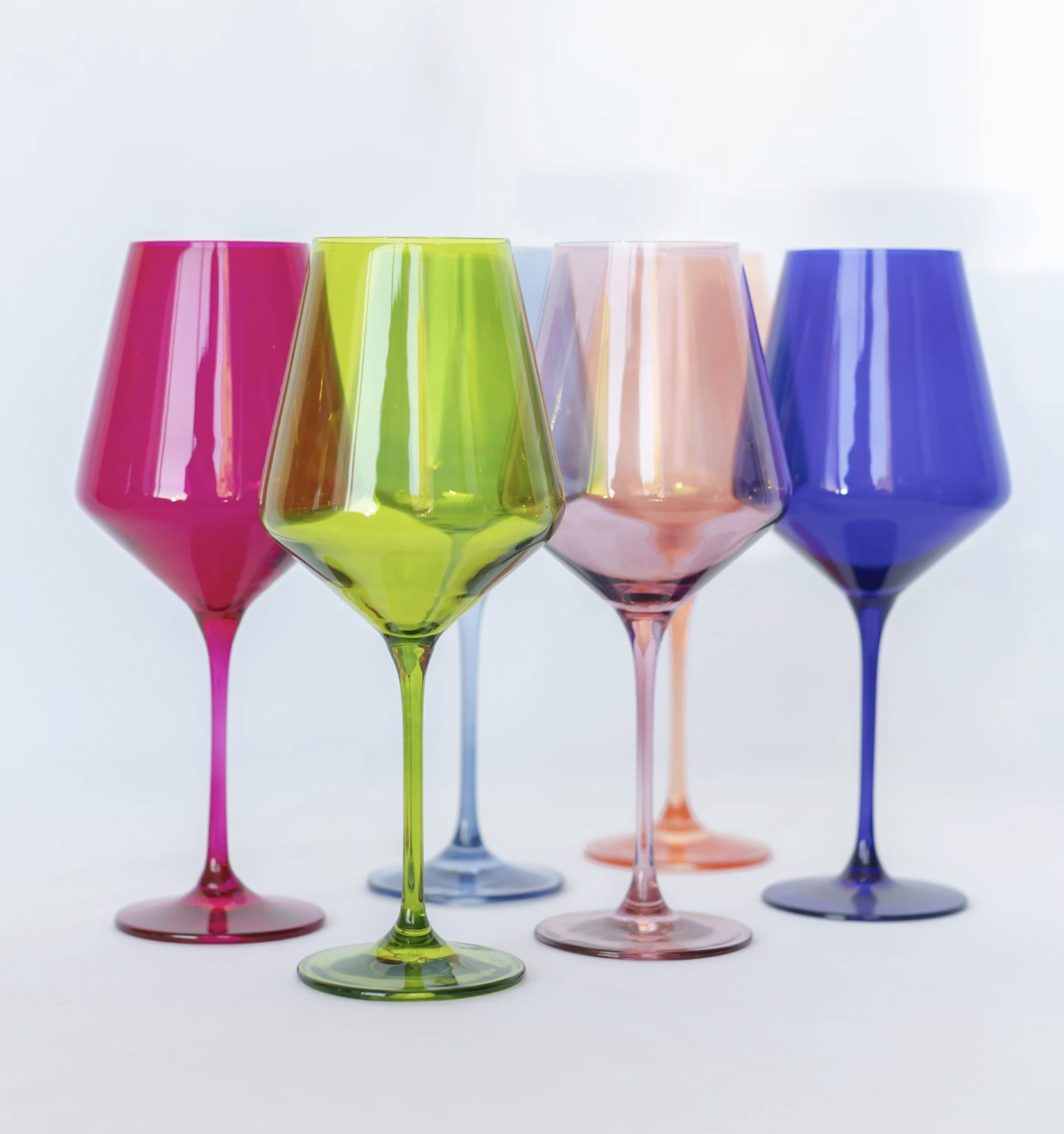 MULTICOLORED WINE GLASSES, SET OF 6 $185